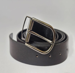 A classic black belt made from durable leather, designed to provide a secure and comfortable fit. Its sleek and timeless look makes it a versatile accessory that complements both casual and formal outfits.