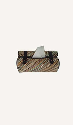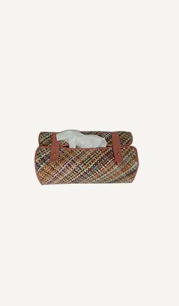 "Crafted from genuine leather, this elegant tissue box cover with a colorful woven design adding an exclusive touch to your sitting area."